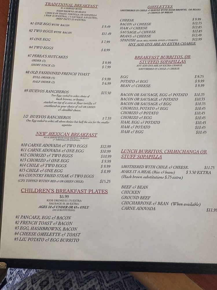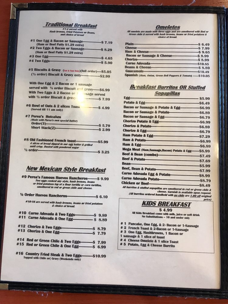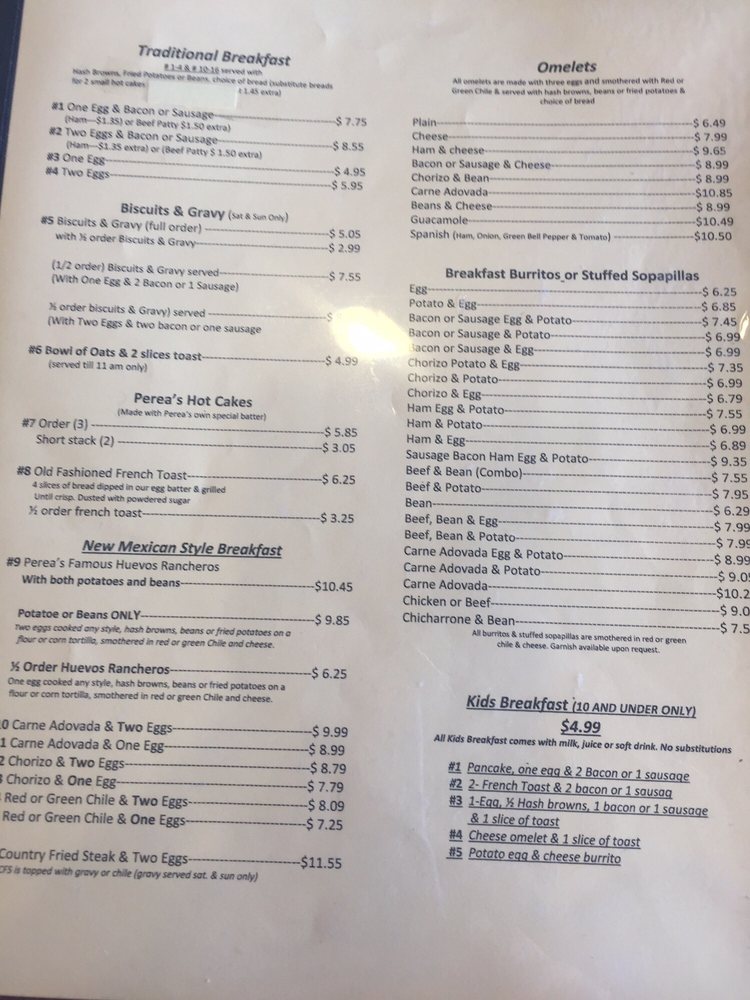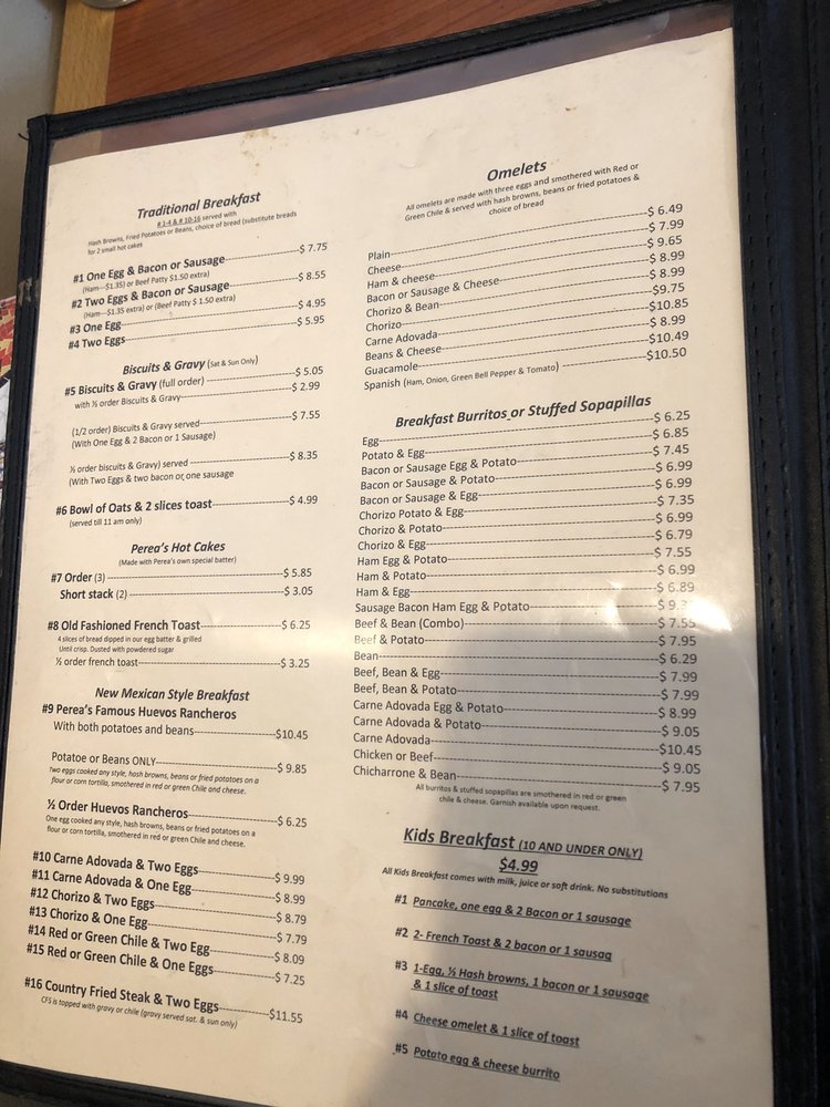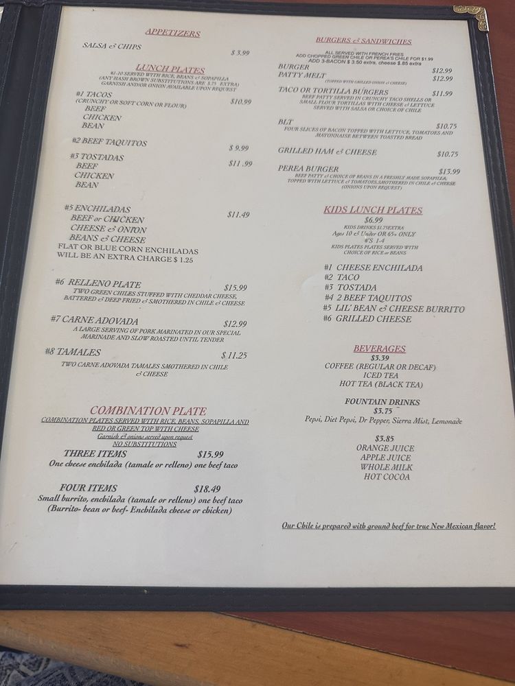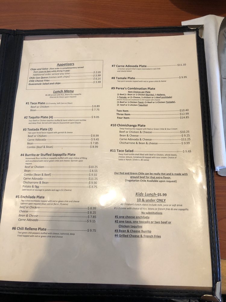 Perea's New Mexican Restaurant Menu (2025 Update)
